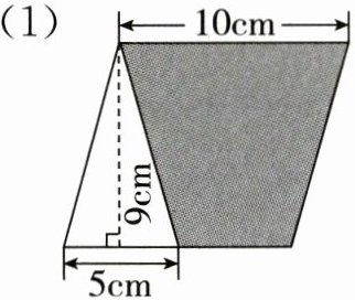 (1)方法1:10×9-5×9÷2=67.5(cm²) 方法2:(10-5+10)×9÷2=67.5(cm²)