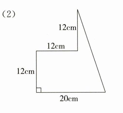 (2)方法1:12×12+(20-12)×(12+12)÷2=240(cm²) 方法2:(12+20)×(12+12)÷2-12×12=240(cm²)