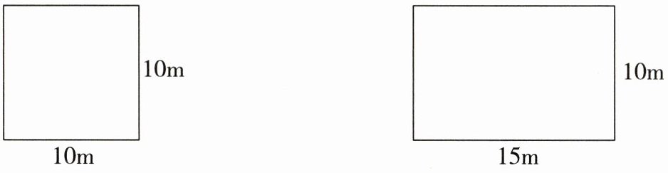 公园有两块草坪,要在每块草坪的四周每隔2.5m插一面彩旗(每块草坪的四角都插)。这两块草坪的四周各插多少面彩旗?先在图上用“ ”代表彩旗画一画,再列式解答。