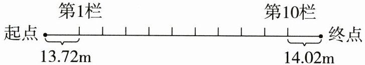 5. 田径赛场男子110m栏的赛道共设10栏(如图),每相邻两栏之间的距离相等,每相邻两栏的距离是多少米?(5分)