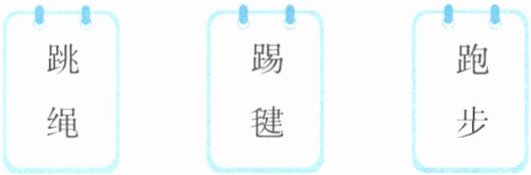 2. 壮壮、淘淘、依依三名同学抽签确定参赛项目,三张卡片上分别写着跳绳、踢毽、跑步。(卡片洗匀倒扣在桌面上)