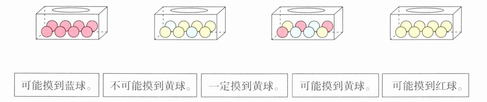 可能摸到蓝球。 不可能摸到黄球。 一定摸到黄球。 可能摸到黄球。 可能摸到红球。
