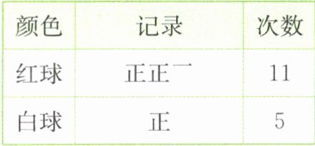 (2)袋子里有2种不同颜色的球,淘淘每次从中摸出一个球,记录下颜色,再放回去摇匀,重复16次,摸球情况如右表。