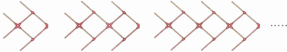 (1) 像这样摆下去,摆 $ n $ 条鱼需要(