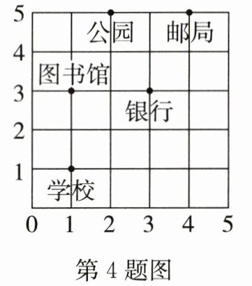 (1)银行的位置是( , ),公园的位置是( , ),学校的位置是( , )。