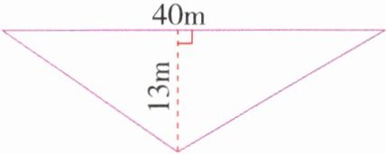 解析:因为三角形的高不变,底延长5.2m,它的面积就增加26m²,根据三角形的高$h=2S÷a$,可以求出三角形的高是26×2÷5.2=10(m),再根据三角形面积计算公式求原来三角形的面积。