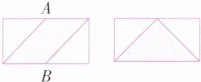 (2)重庆模拟题 如图,两个长方形的长和宽分别相等,A、B分别是左边长方形上、下两条边的中点。比较两个长方形中涂色部分的面积,(