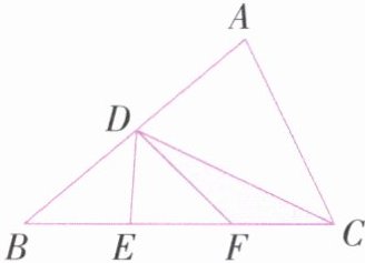 5. 如图,D是AB的中点,BE=EF=FC,已知涂色部分的面积是15cm²,求三角形ABC的面积。