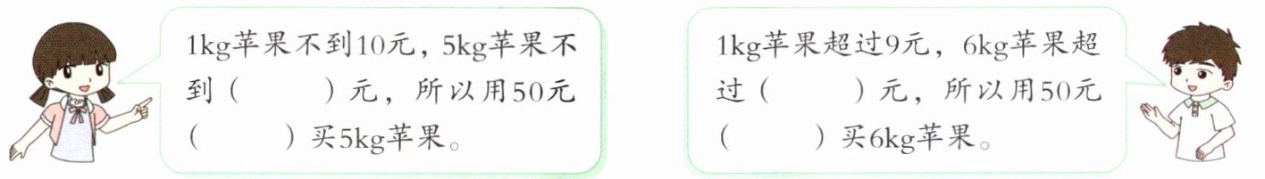)买 5kg 苹果。1kg 苹果超过 9 元,6kg 苹果超过(