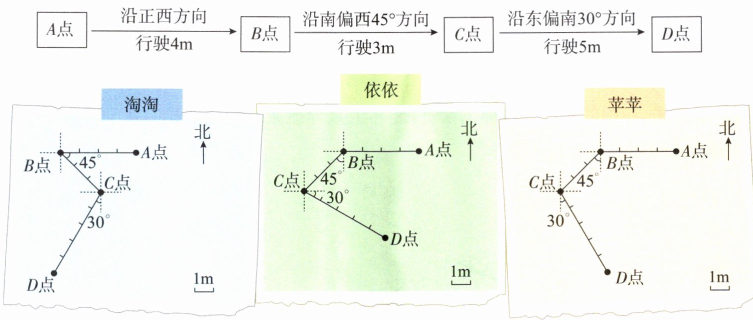 (2)先沿西偏北40°方向骑行900m到超市,再沿正西方向骑行1200m到广场,最后沿南偏西30°方向骑行600m回到家。