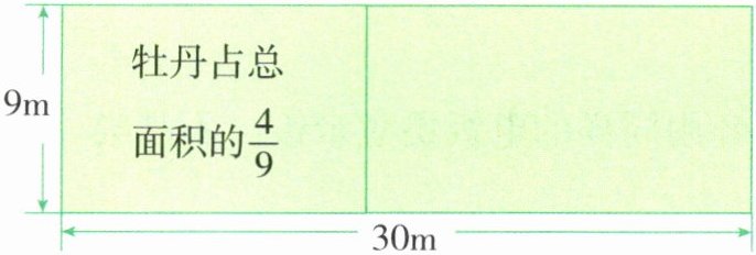 4. 如图,花园里有一块长方形花圃,李伯伯准备用$\frac{4}{9}$种牡丹,剩下的按$2:3$的面积比种芍药和丁香。三种花的占地面积分别是多少平方米?