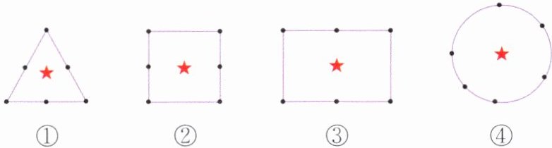 (从左到右四个图形,①正三角形,中间一个$★$;②正方形,中间一个$★$;③正三角形,中间一个$★$,顶点朝上;④圆,中间一个$★$)
