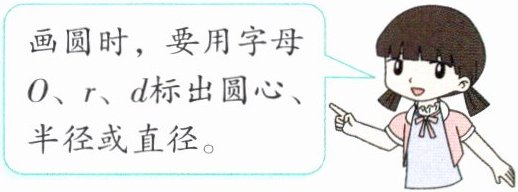 画圆时,要用字母$O$、$r$、$d$标出圆心、半径或直径。