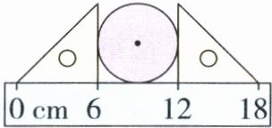 (中间一个圆,圆心为$O$,圆上有$A$、$B$、$C$三点,$A$在最下方,$B$在右上方,$C$在左上方,连接$OA$、$OB$、$OC$,$AB$相连,$OC\perp AB$于一点,右侧有$0cm$、$6$、$12$、$18$的刻度线,$A$点对应$0cm$,$B$点对应$12$。)