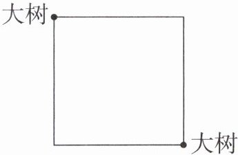 5. 如图,有一块边长是 $8m$ 的正方形草地,在这块正方形草地的一组相对的顶点上各有一棵大树,每棵大树上都用绳子拴着一头牛,绳子的长都是 $8m$。两头牛都能吃到的草地面积是多少平方米?(树干粗细和打结处忽略不计)(先在图中画一画,再计算)