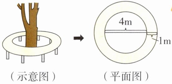4. 人民广场有一种圆环形的“围树座椅”(如图),这种“围树座椅”的椅面宽度是 $1m$,那么“围树座椅”的椅面面积是多少平方米?