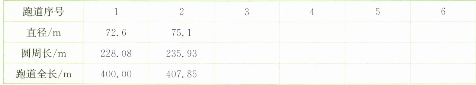 )m,从内往外数,第一条半圆形跑道的直径是(72.6