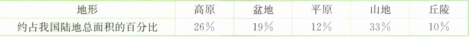 4. 情境题 下表是我国陆地各种地形分布情况统计表。