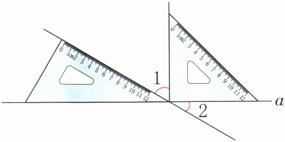 (2) 如图,沿着直线 $a$ 摆了一副三角尺,求 $\angle 1$ 和 $\angle 2$ 的度数。