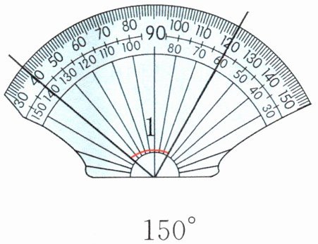 解析:如果角的起始边与0°刻度线不重合,那么角的度数为两条边所对的刻度之差,即用较大刻度减去较小刻度就是所测量角的度数。因此∠1=120°−40°=80°或∠1=140°−60°=80°。