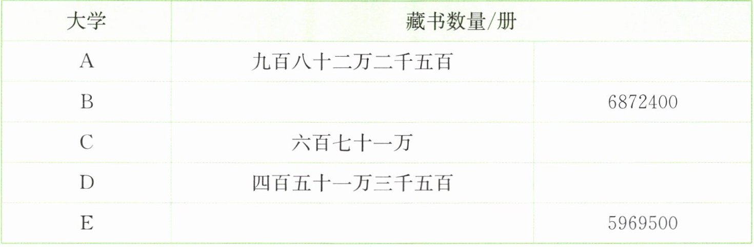 4. 下面是某年五所大学图书馆的藏书数量,读一读,写一写,比一比。