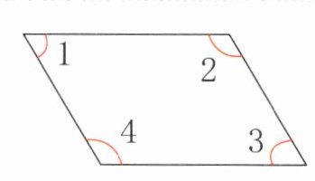 解析:先用量角器量角,根据量角结果可知,平行四边形的对角相等,内角和是60°+120°+60°+120°=360°。