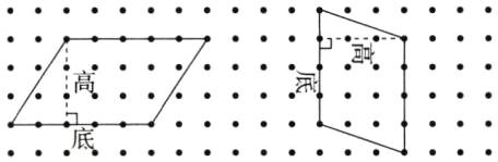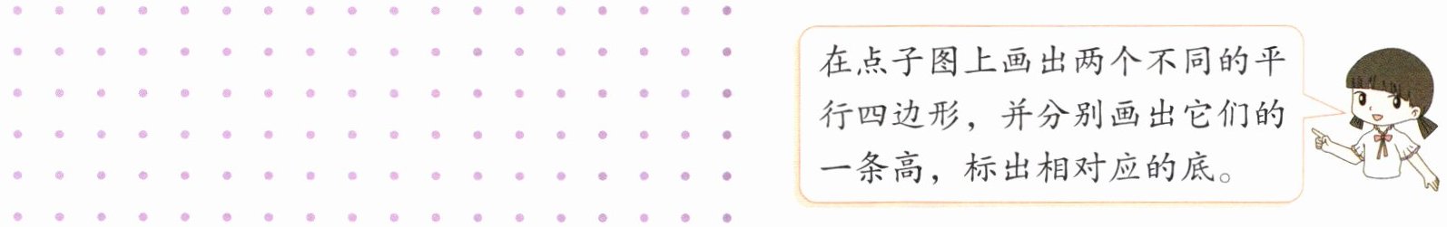 在点子图上画出两个不同的平行四边形,并分别画出它们的一条高,标出相对应的底。