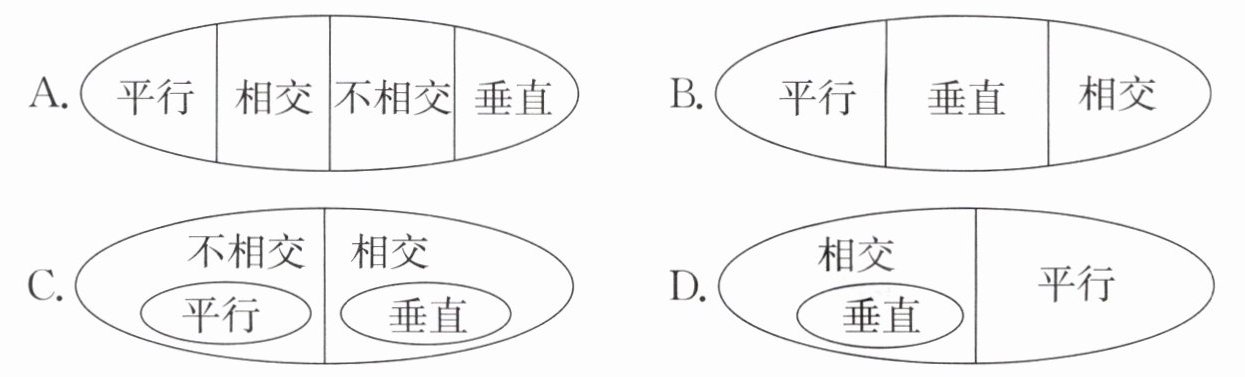 1. 四(1)班同学在一张纸上画了两条直线。下面是 4 名同学对所画同一个平面内直线的位置关系的分类情况,其中合理的是(