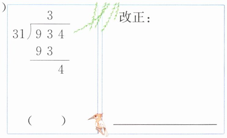 $ \begin{array}{r} 3 \\ 31 \enclose{longdiv}{934} \\ 93 \\ \hline 4 \end{array} $