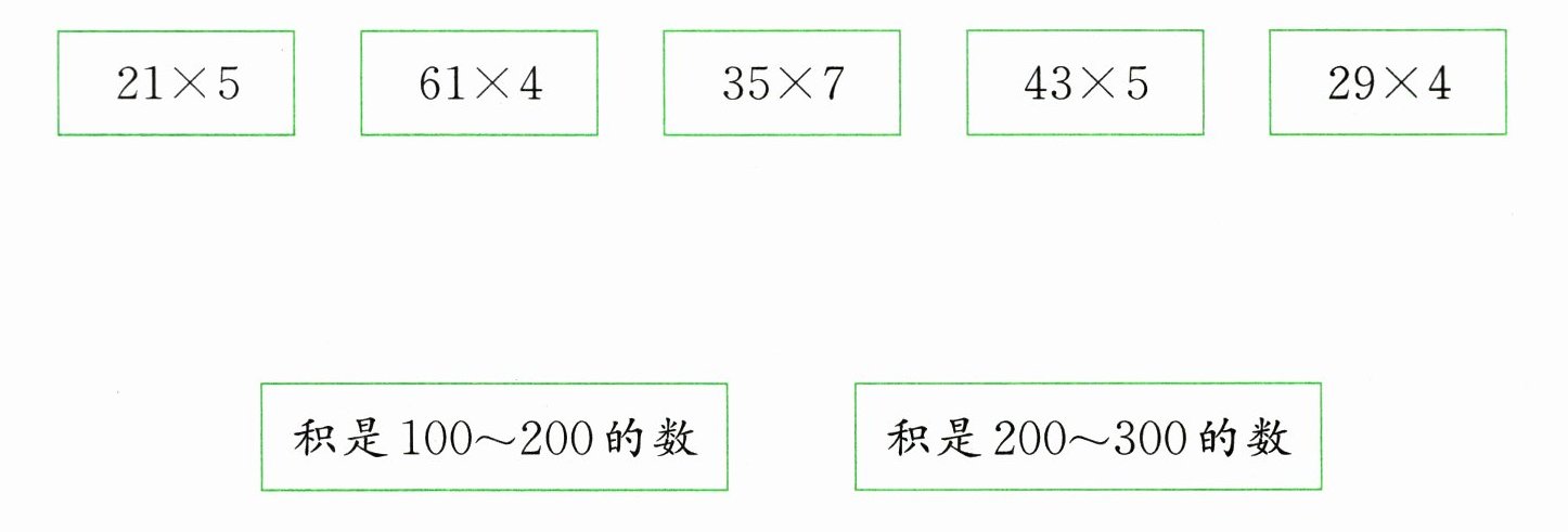 积是100~200的数:21×5 29×4 积是200~300的数:61×4 35×7 43×5