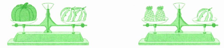 一个南瓜重 $ 4 $ 千克,一个西瓜重(