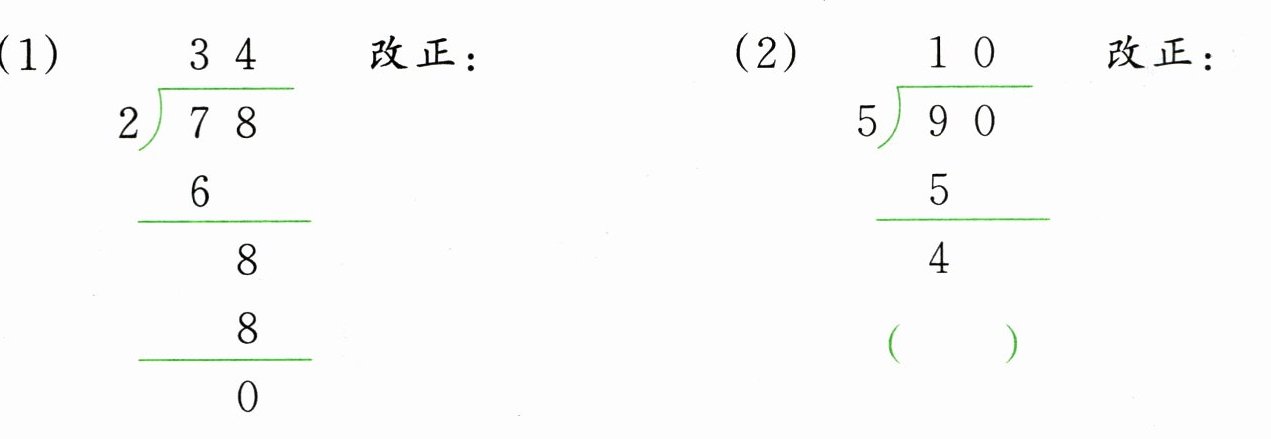 2. 在计算正确的竖式下面画√,错误的画×并改正过来。