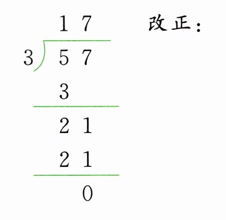$\begin{array}{r}17 \\3\enclose{longdiv}{57} \\\underline{3} \\21 \\\underline{21} \\0\end{array} $