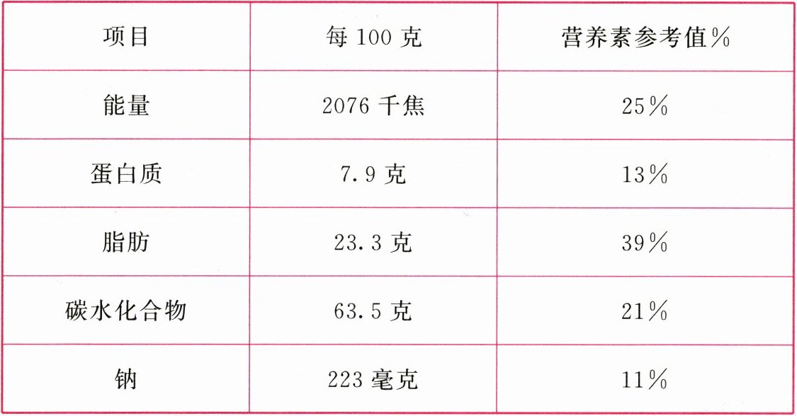 )的数,叫做百分数。(2) 某饼干的营养成分表如下图: