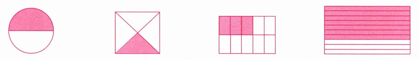 $\frac{1}{2}= $ $\frac{1}{4}= $ $\frac{3}{4}= $ $\frac{1}{5}= $
