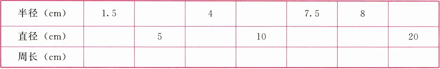 |周长(cm)|9.42|15.7|25.12|31.4|47.1|50.24|62.8|