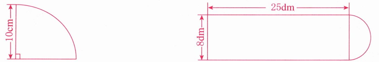 2×10×3.14÷4+10×2=35.7(cm) 8×3.14÷2+25×2+8=70.56(dm)