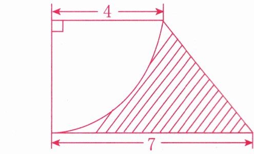 大圆阴影部分面积与小圆阴影部分面积的差等于大圆面积与小圆面积的差。$4^2× 3.14-3^2× 3.14=21.98$(平方分米)