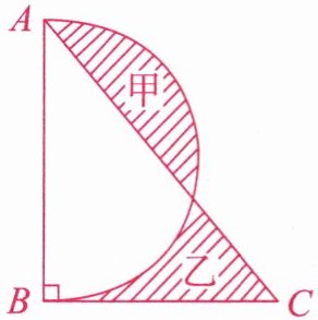 2. 如下图所示,半圆的直径 $ AB $ 长为 8 厘米,阴影部分甲比阴影部分乙的面积多 1.12 平方厘米。求三角形 $ ABC $ 的边 $ BC $ 的长。