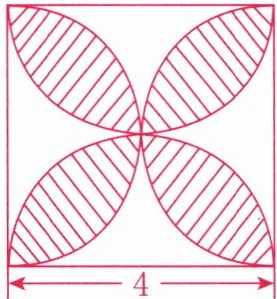 2. 四个半圆面积之和(即2个整圆面积):$ 2 × \pi r^2 = 2 × 3.14 × 2^2 = 2 × 3.14 × 4 = 25.12 $平方厘米