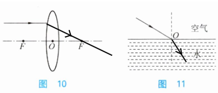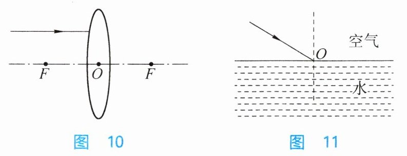 17. 请画出如图10、11所示的两个光路图中的折射光线示意图。