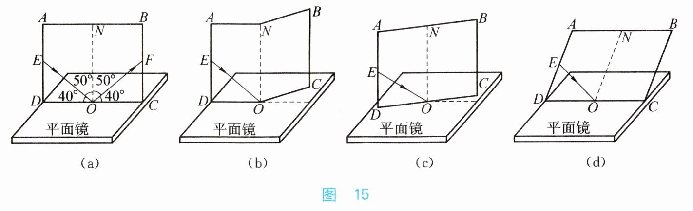 (2)在如图15所示的操作中,操作后在纸板上仍可以看到反射光的是______。