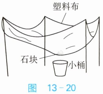 4. 在干旱缺水的地区,可用塑料布收集露水,如图 13 - 20 所示。露水形成过程中发生的物态变化是