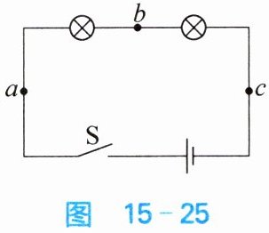 3. 在“探究串联电路中的电流”实验中,某同学用电流表分别测出图 15 - 25 中 $a$、$b$、$c$ 三处的电流大小。为了进一步探究 $a$、$b$、$c$ 三处的电流大小有什么关系,他下一步的操作应该是(