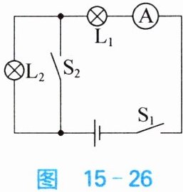 4. 如图 15 - 26 所示,当开关 $S_{1}$ 闭合、$S_{2}$ 断开时,电流表 $A$ 的示数为 $0.24\ A$,则通过灯 $L_{1}$ 的电流是