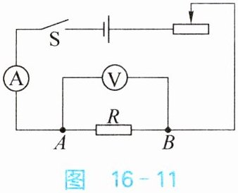 4. 小刚用如图 16-11 所示电路探究“一段电路中电流与电阻的关系”。在此实验过程中,当 $ A $、$ B $ 两点间的电阻由 $ 5Ω $ 换为 $ 10Ω $ 后,为了探究上述问题,他应该采取的唯一操作是(