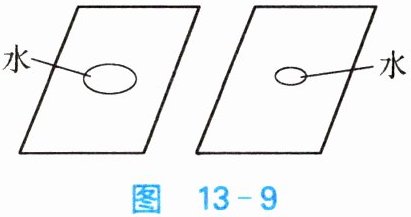 例 1 如图 13 - 9 所示,在两块相同的玻璃片上,小明同学分别滴一滴质量相同的水。他主要研究蒸发快慢是否与(