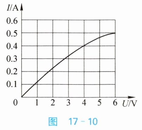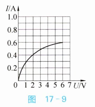 7. 灯泡 L 的额定电压为 6 V。小明通过实验测得电流随电压变化的曲线如图 17 - 9 所示。由图可知,当灯泡 L 正常发光时,通过其灯丝的电流是
