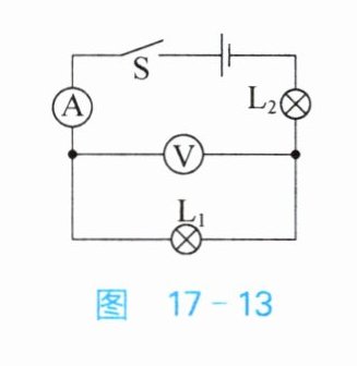 11. 如图 17 - 13 所示,电源电压为 6 V,闭合开关,电压表的示数为 3.8 V,电流表的示数为 0.3 A,求:
