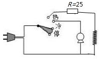 (2) 若电热吹风机的原理如图 $ 17 - 16(\mathrm{b}) $ 所示,小红欲对电热吹风机进行改装,使改装后的电热吹风机的热风挡电热丝的功率(电热吹风机电热丝的功率为电热吹风机额定功率的 $ \dfrac{2}{3} $)减为其额定功率的 $ \dfrac{16}{25} $,热风减弱。请你在不损坏电热丝的情况下帮小红完成这项改装工作,并在图 $ 17 - 16(\mathrm{c}) $ 仿照图 $ 17 - 16(\mathrm{b}) $ 画出改装电路,计算出改装所用电阻的大小。